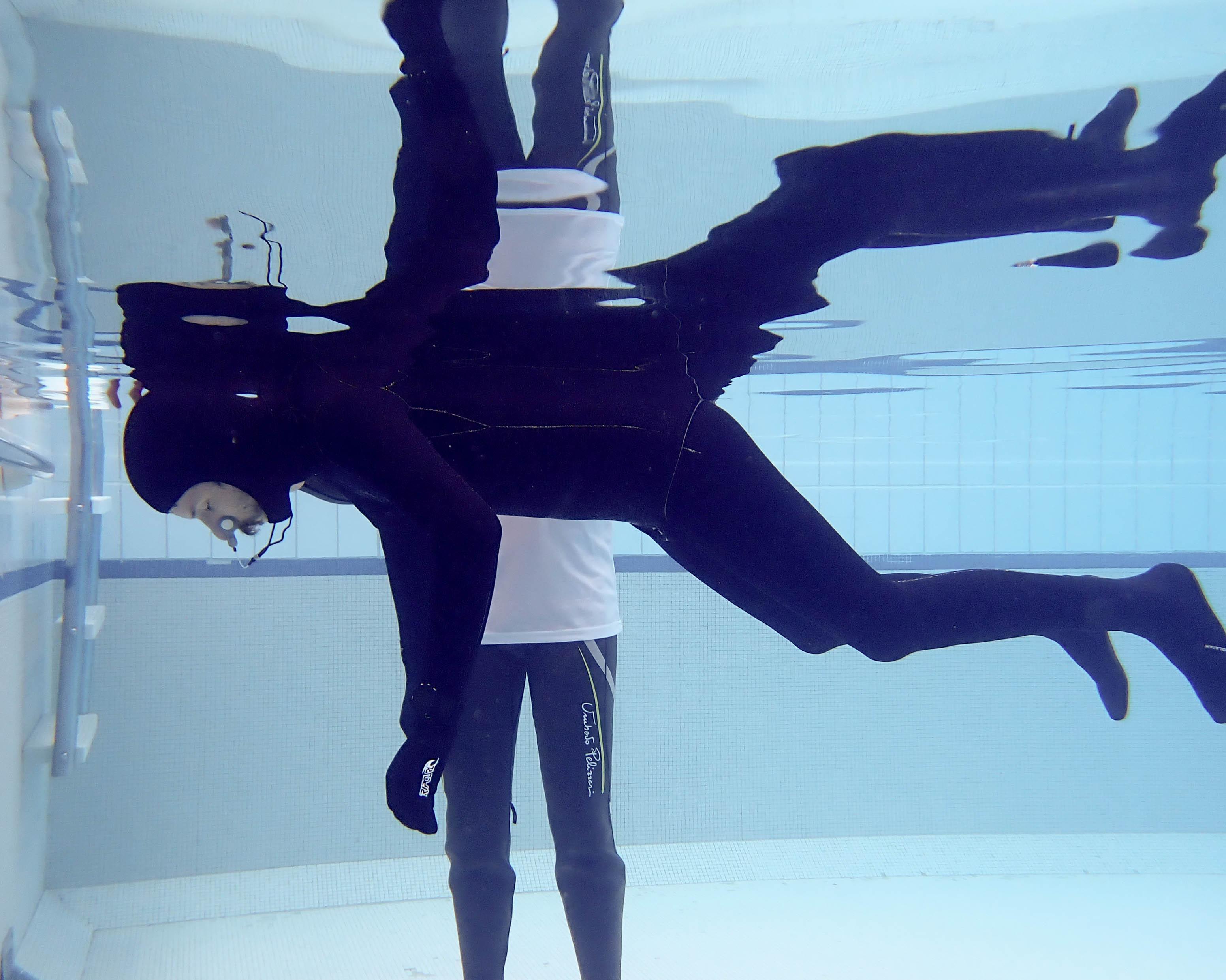 L’apnée statique consiste à rester le plus longtemps possible immobile dans l’eau. Elle permet de travailler le relâchement, les sensations et la concentration.
